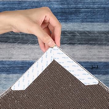 The fact that it is durable and non-adhesive means it can efficiently protect your hardwood floor and maintain the rug in position for an extended period. Use to help hold down rug corners in order to prevent slips and trips Apply to the edges of rug corners to help prevent curling Helps keep rug corners firmly in place to make vacuuming easier. The key to layering carpet over carpet is to vary the texture.