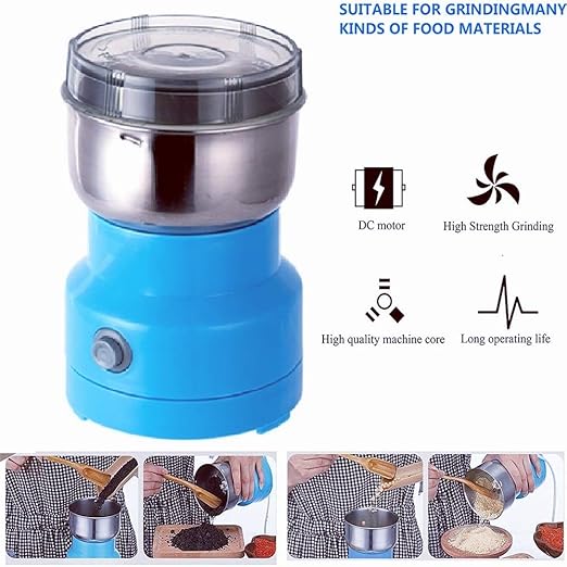 Amazon Com Upgraded Version Of Small Grinder Grain Grinder And Coffee Grinder Electric Spice Grinding Machine 150w Overheat Protection Coffee Mill Grinder For Coffee Bean Nut Spices Seeds Grains Blue Kitchen
