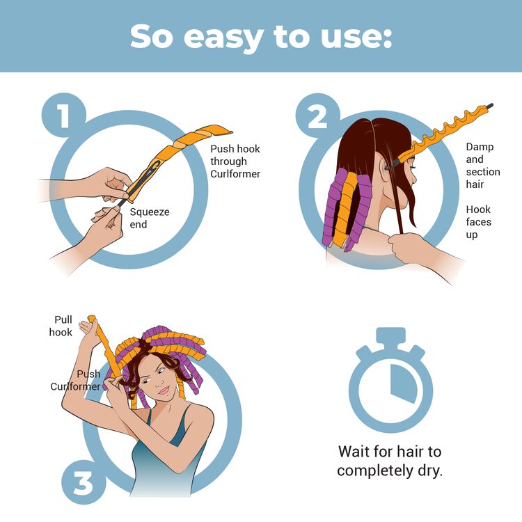 Designed to create spiral curls. Perfect for normal or thick hair dry or even damp. Bend the ends of the rollers to secure.