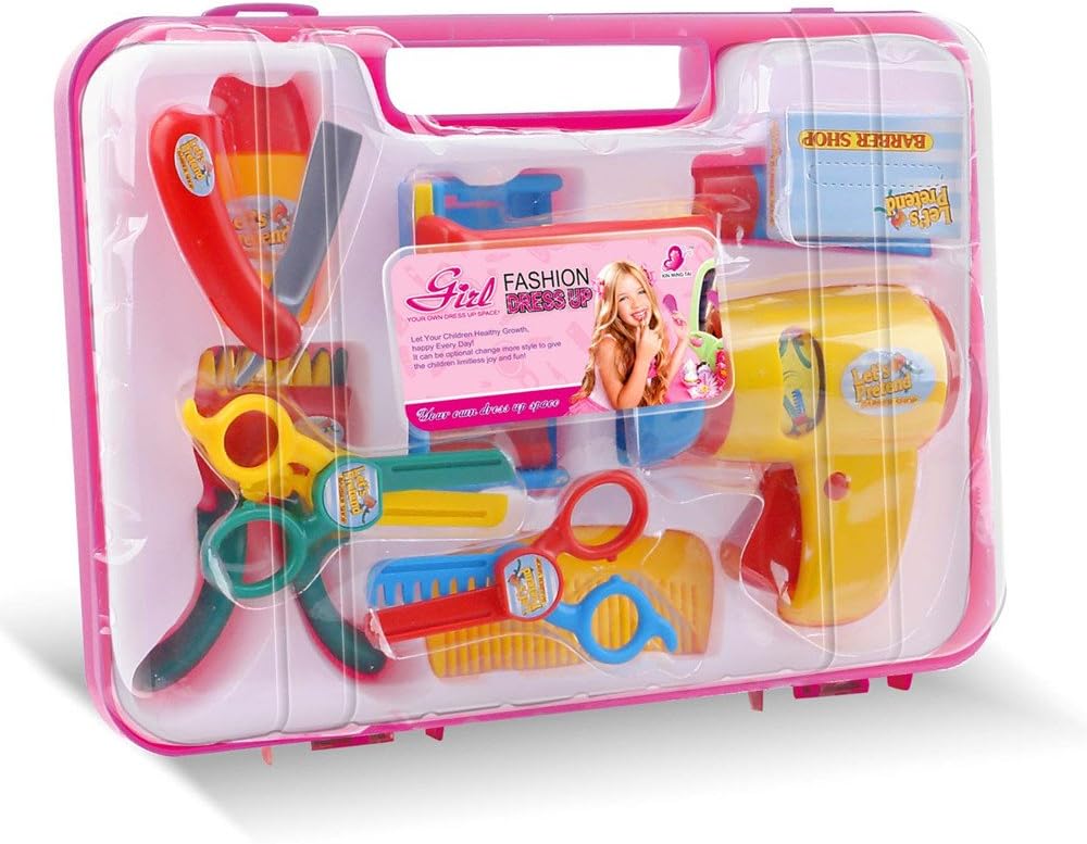 Fashion Barber Pretend Play Tool Kit Hair Stylist Salon Playset For Kids With Hair Trimmers Dryer Razors And Styling Acce Pretend Play Playset Kids Accessories