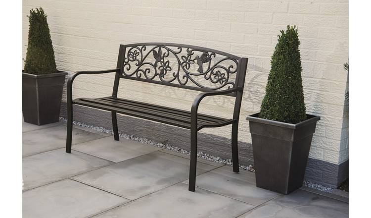 Buy Greenhurst 2 Seater Metal Garden Bench Black Garden Benches And Arbours Argos