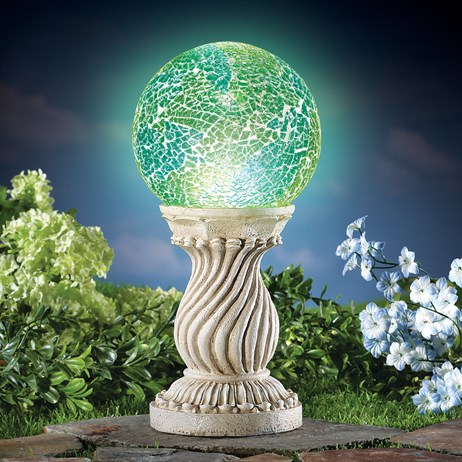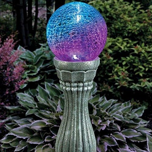 Chameleon Solar Crackle Glass Gazing Ball Pedestal Solar Gazing Ball Solar Powered Garden Accents At Songbird Garden
