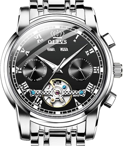 Amazon Com Olevs Watch Men Swiss Automatic Luxury Watches For Men Waterproof Stainless Steel Strap Mechanical Skeleton Self Winding Tourbillon Watches Black Face Classic Men S Wrist Watches Reloj Para Hombre Xin Lingyu Watches