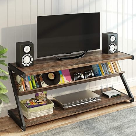 Amazon Com Little Tree Tv Stand 59 Inches Industrial Rustic Media Stand For 60 Tv Large 3 Tier Entertainment Center With Shelves Media Console Table For Living Room Brown 59 Vintage Furniture Decor