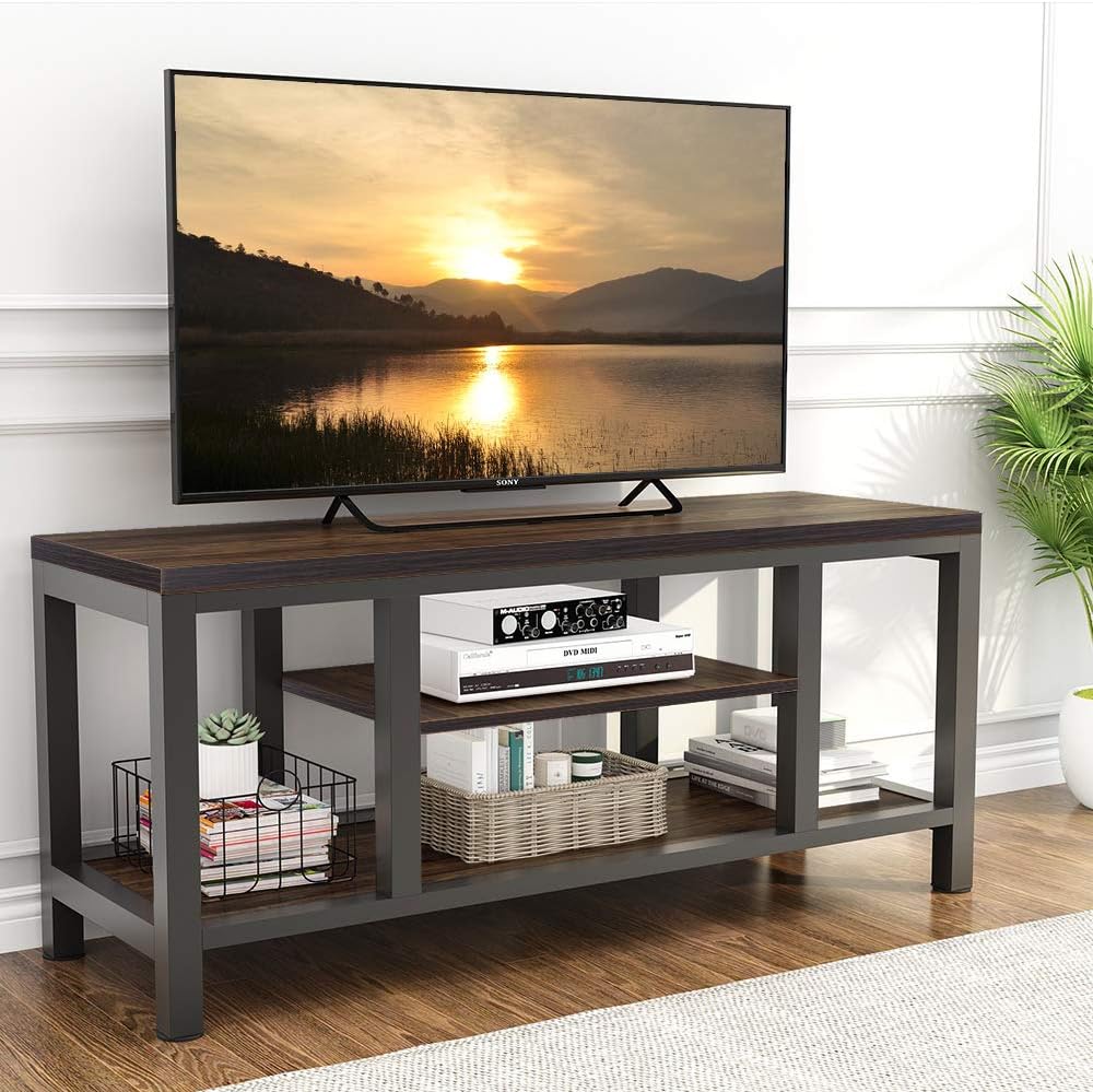 Amazon Com Little Tree Tv Stand Entertainment Center With Shelves For 60 Inches Tvs Large 3 Tier Media Stand With Metal Frame Industrial Rustic Tv Console Table For Living Room Furniture Decor