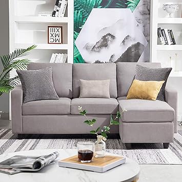Amazon Com Honbay Convertible Sectional Sofa Couch For Small Apartment L Shaped Sofa Couch With Linen Fabric And Reversible Chaise Grey Gainsboro Furniture Decor