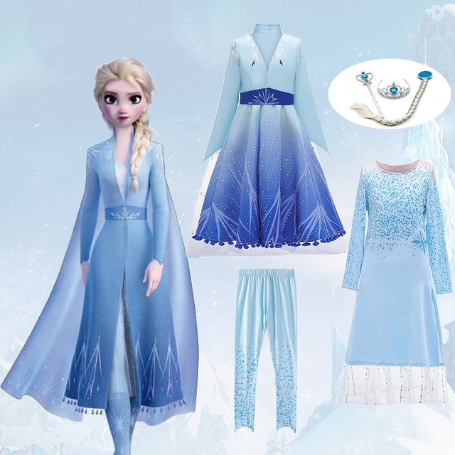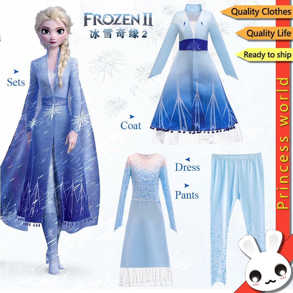 Disney Frozen 2 Dress Princess Elsa Dresses Set Coat Dress Pants Kid Girl S Costume Shopee Indonesia