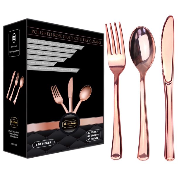 Jl Prime 120 Rose Gold Plastic Silverware Set Rose Gold Plastic Cutlery Set Heavy Duty Utensils Disposable Rose Gold Flatware 40 Plastic Forks 40 Plastic Spoons 40 Plastic Knives Walmart Com Walmart Com