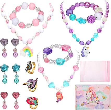 Amazon Com Bling Bling Unicorn Chunky Bubblegum Necklace Unicorn Fashion Beads And Bracelet Set Kids Toddler Dress Up Jewelry Style1 Style 1 Toys Games