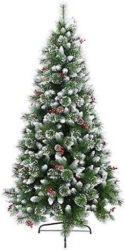 Amazon Com Abusa Prelit Frosted Artificial Christmas Tree 7 5 Ft Flocked Snowy Everest Pine With Red Berries And Pine Cones 750 Led Lights 1383 Branch Tips Home Kitchen