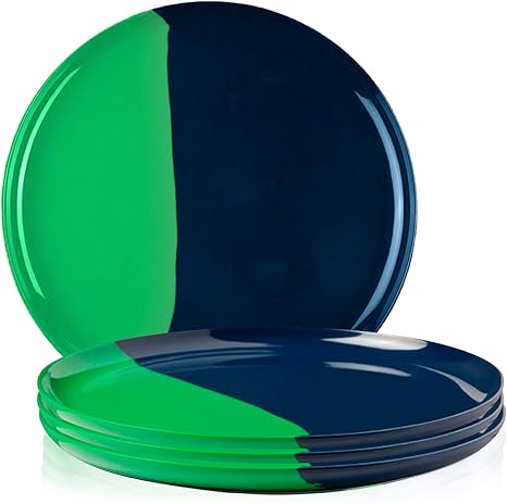 Amazon Com Melamine Dinner Plates Set Of 4 Durable And Kid Friendly Dinnerware Set For The Whole Family Green Navy Thomas Fuchs Creative Dinner Plates