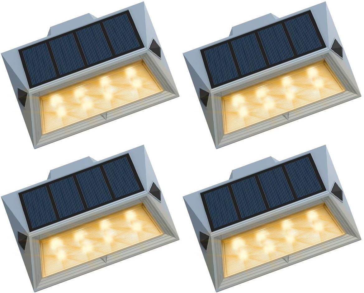 Roopure Newest Version Warm 8 Led Warm White Solar Deck Lights Outdoor Decorative Solar Step Lights Waterproof Lighting For Stair Garden Wall Paths Patio Decks Auto On Off 4 Pack Amazon Com