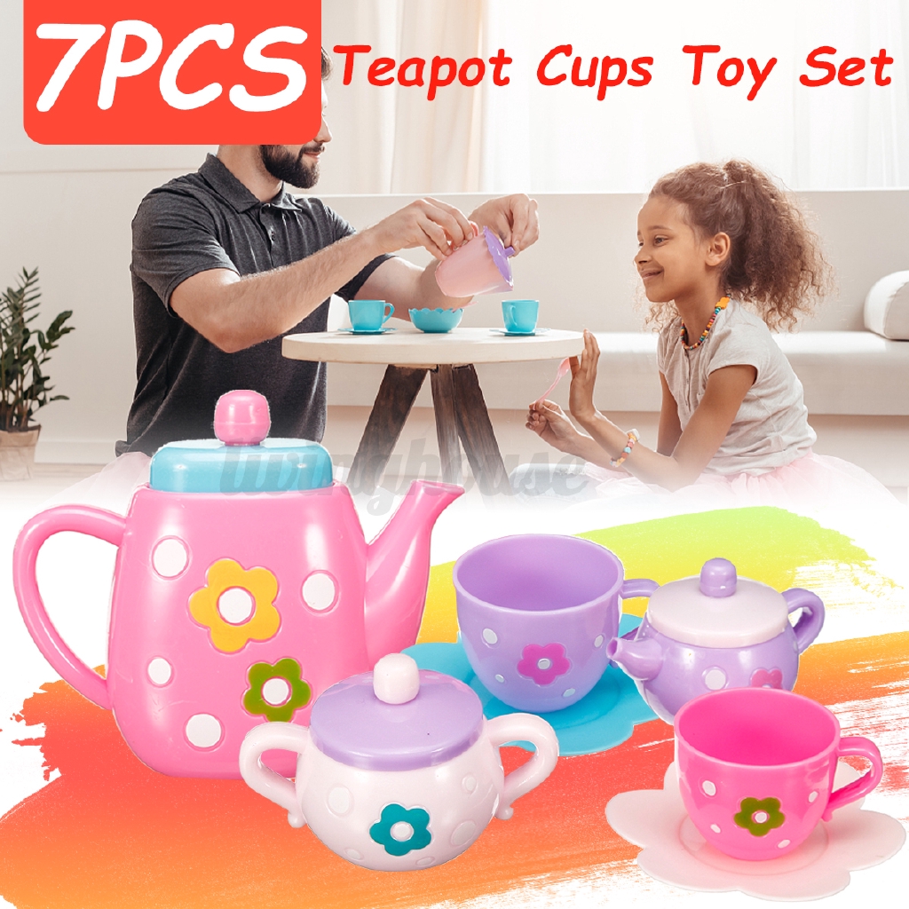 7pcs Childrens Tea Set Toy Teapot Cups Saucers Play Pretend Food Fun Kids Gift Shopee Indonesia