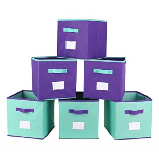 Tqvai Mix Color Foldable Storage Cubes 6 With Label Holder Colorful Kid Toy Basket Bins 6 Pack Mix Purple Mint Green Walmart Com Walmart Com