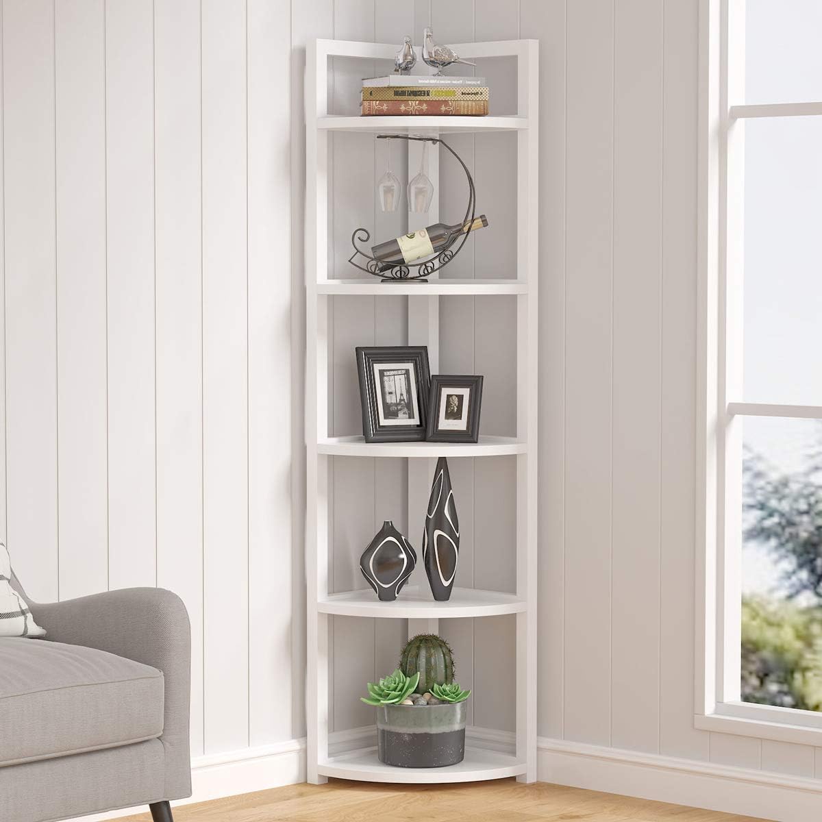 Amazon Com Tribesigns 5 Tier Corner Shelf Modern Corner Storage Rack Plant Stand Small Bookshelf For Living Room Home Office Kitchen Small Space White Kitchen Dining