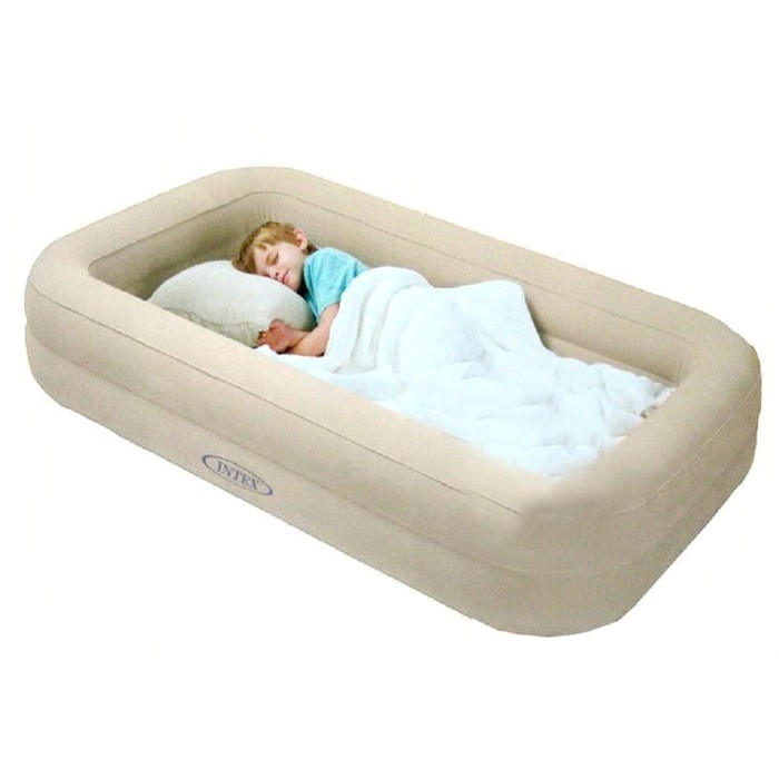 The Intex travel bed for kids also has an included carrying bag that makes storage and transportation simple. The INTEX Youth Travel Bed Set with Hand Pump features an airbed and a frame that can be used separately or together. Regalo My Cot Portable Toddler Bed Includes Fitted Sheet Royal Blue.