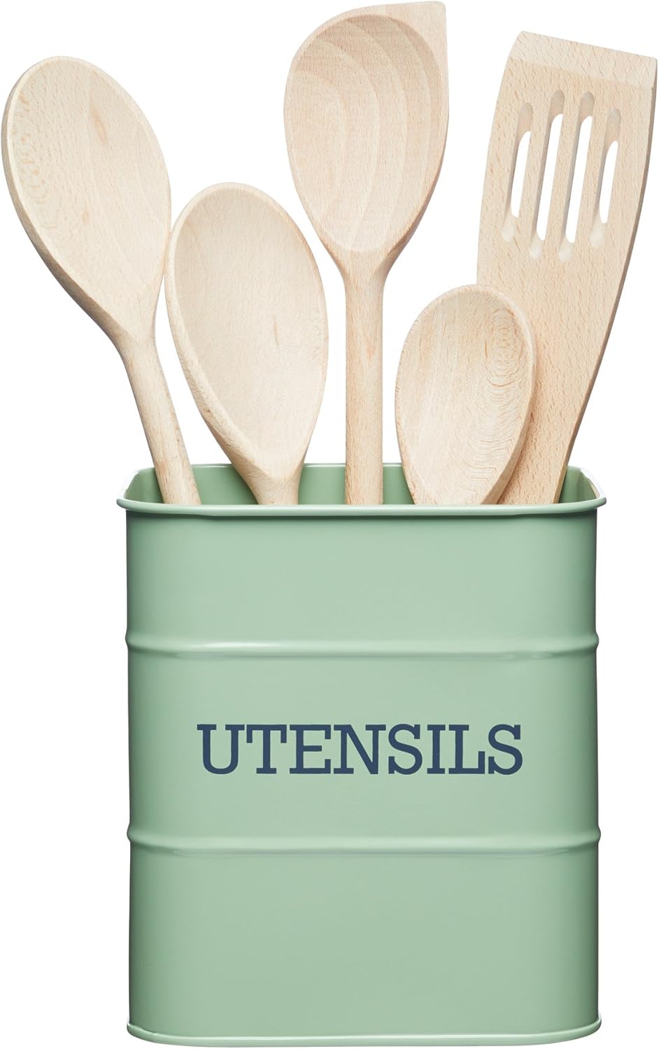 Amazon Com Kitchencraft Living Nostalgia Metal Kitchen Utensil Holder 15 X 15 X 16 Cm 6 X 6 X 6 5 English Sage Green Home Kitchen