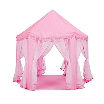 Amazon Com Wilwolfer Princess Castle Play Tent Large Kids Play House With Star Lights Girls Pink Play Tents Toy For Indoor Outdoor Games Toys Games