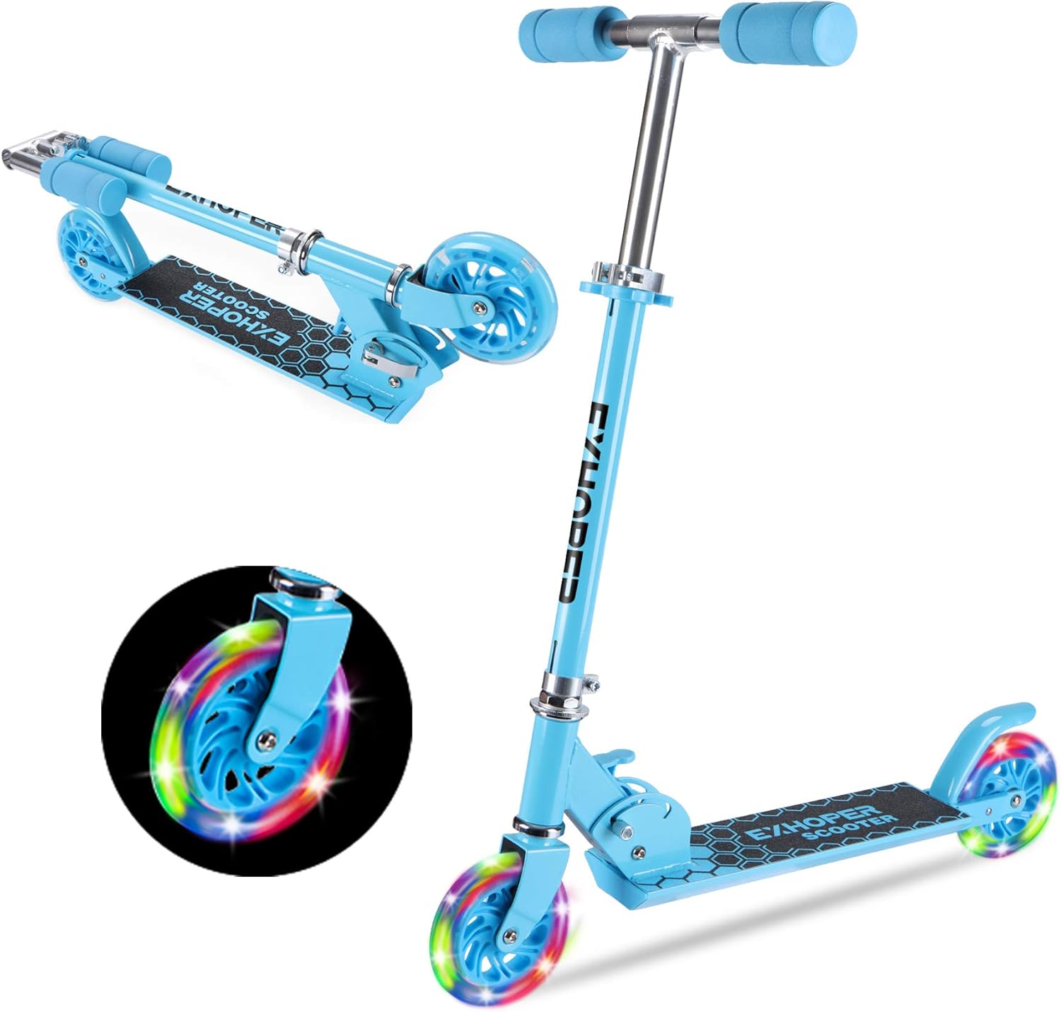 Amazon Com Beleev V1 Scooters For Kids 2 Wheel Folding Kick Scooter For Girls Boys 3 Adjustable Height Light Up Wheels For Children 5 To 14 Years Old Aqua Sports Outdoors