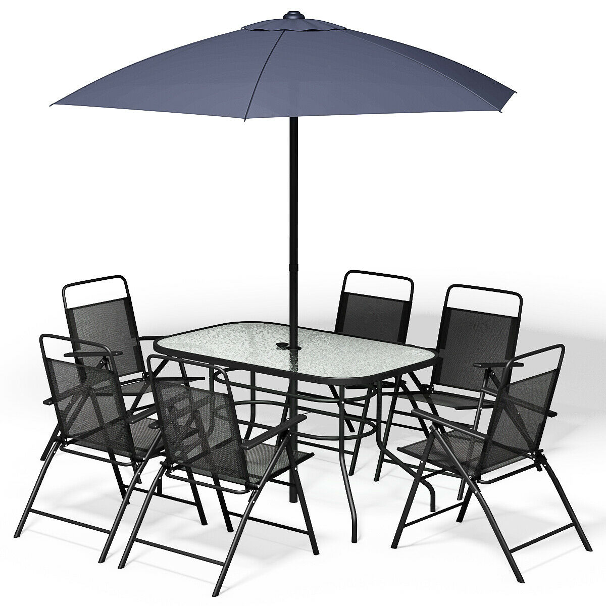 8-piece Patio Set with Large Chairs Multiple Colors Aqua Blue Navy Green. 6 Piece Black Patio Set with Table Umbrella and 4 Folding Chairs.
