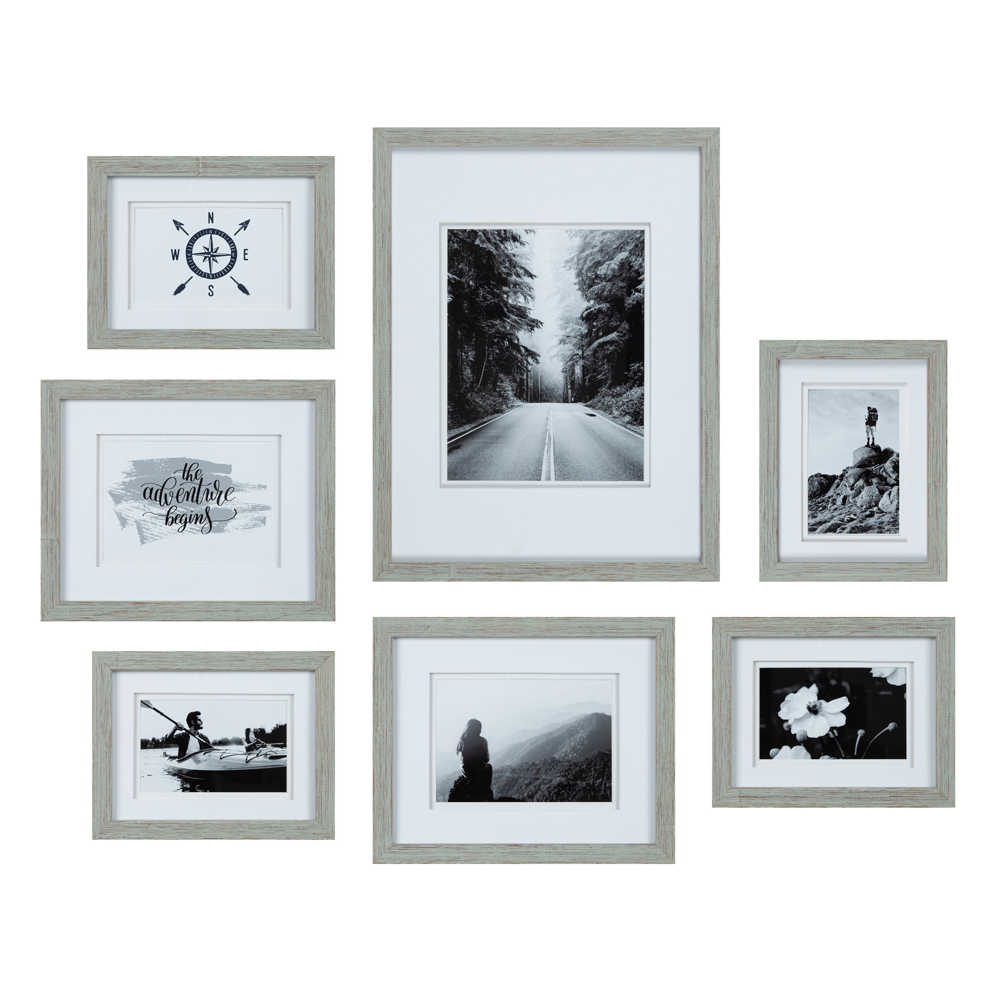 Set Of 7 Piece Grey Photo Frames With Double White Mat Wall Gallery Kit Includes Hanging Template Art Prints And Hanging Hardware Walmart Com Walmart Com