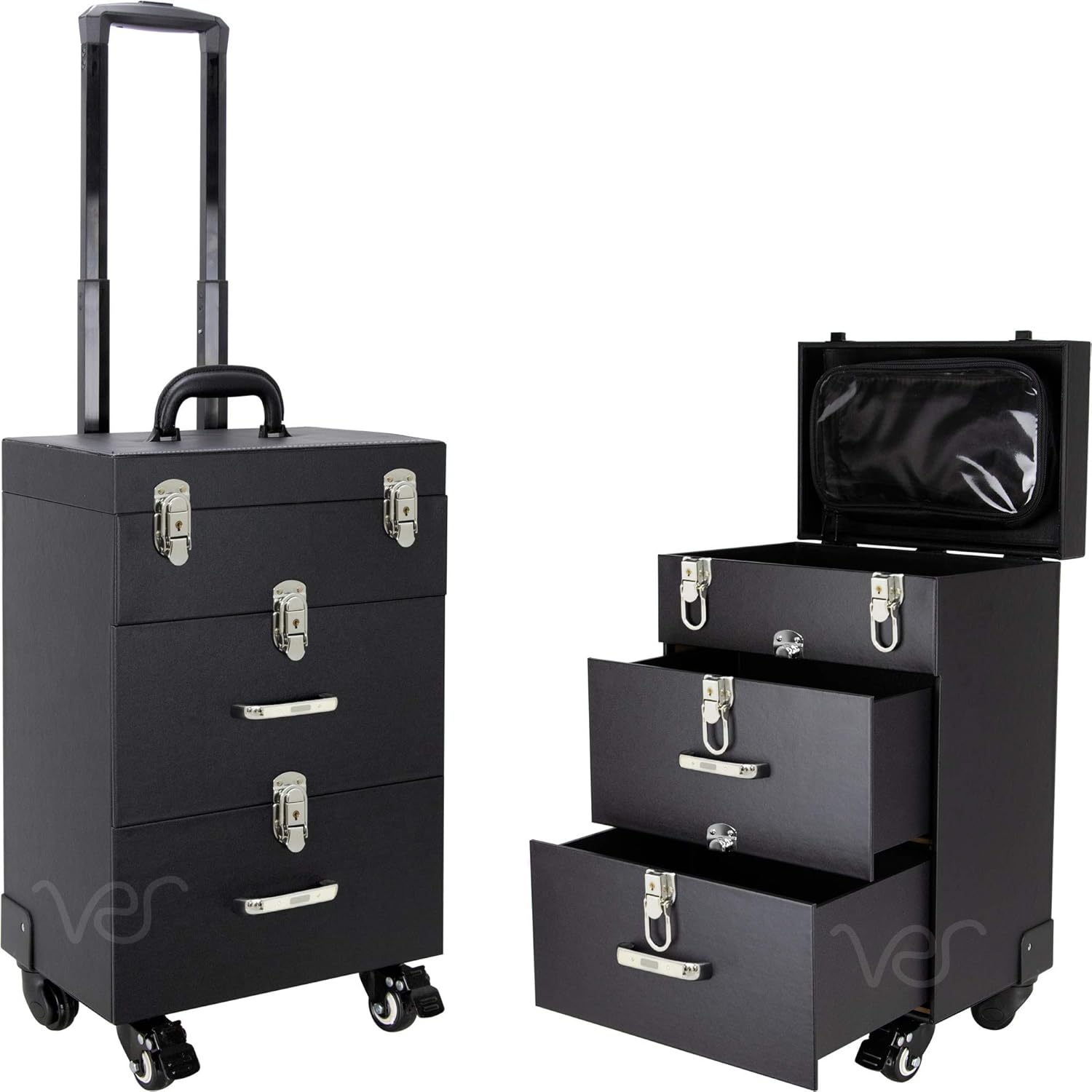 Amazon Com Sunrise Professional Rolling Makeup Train Case Hair Stylist Nail Makeup Artist Travel Case Faux Leather Black C6026pvab Beauty