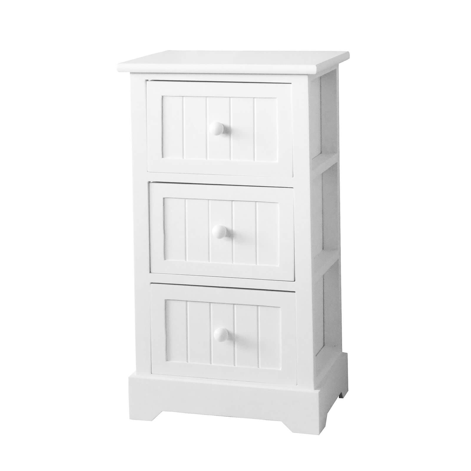 White Wood Wicker Style Bathroom Drawer Unit 3 Drawer Store
