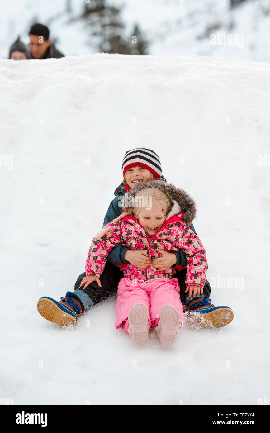 Kids On Snow Slide High Resolution Stock Photography And Images Alamy