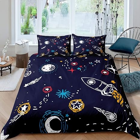 Amazon Com Feelyou Kids Comforter Cover Outer Space Themed Bedding Set For Boys Children Space Rocket Print Duvet Cover Ultra Soft Cartoon Universe Planet Bedspread Cover Twin Size Quilt Cover 2pcs Home