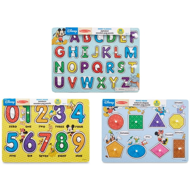 Melissa And Doug Disney Wooden Peg Puzzles Set With Letters Numbers And Shapes And Colors Walmart Com Walmart Com