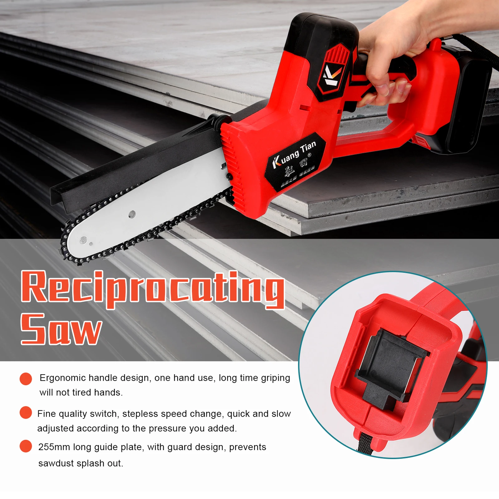 88v Electric Cordless One Hand Saw Chain Saw Woodworking W Battery Kit Shopee Indonesia