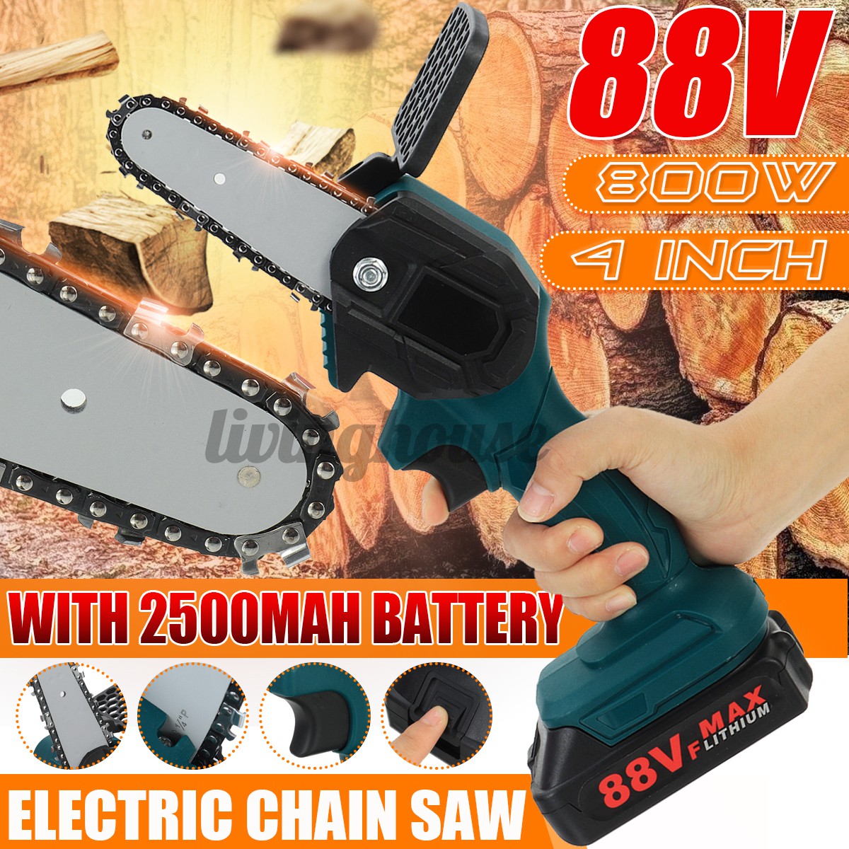 1280w 88v 198v Mini Electric Chain Saw Cordless Portable One Hand Saw Woodworking Wood Cutter High Hardness Wear Resistant Chain Buy From 196 On Joom E Commerce Platform