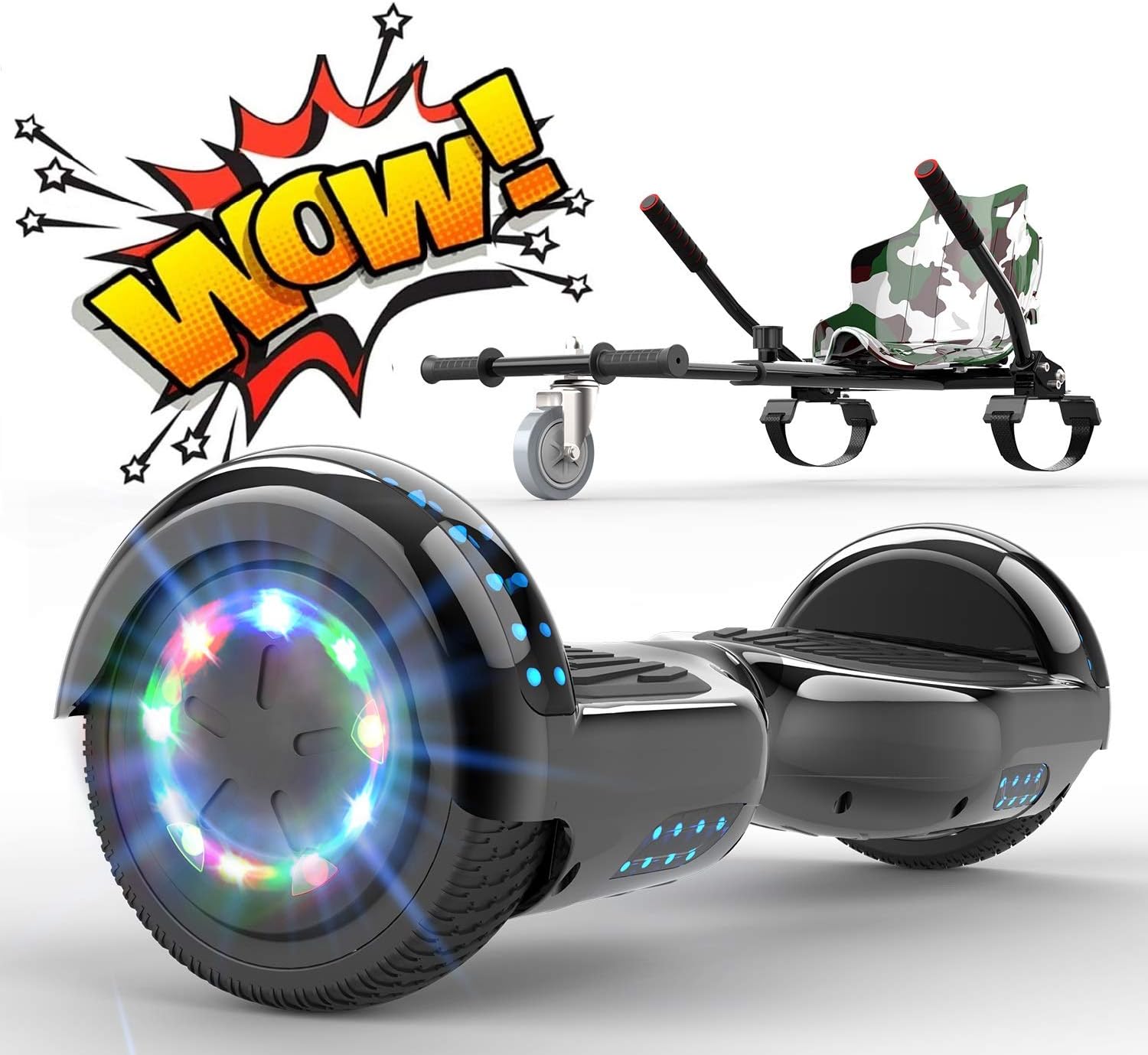 Toeu Hoverboard Go Kart Bundle 6 5 Segway With Hoverkart Built In Bluetooth Colorful Led Lights Balance Board For Kids Gift Amazon Co Uk Sports Outdoors