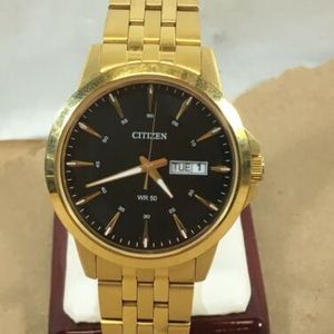 Authentic With Original Packaging. Citizen Eco-Drive WR 50 gold plated gentlemans bracelet watch with daydate apertures 38mm currently working. Citizen quartz chronograph wr 50.