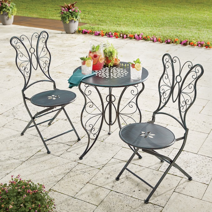 All Hello Sign in. Easily assembles to full adult size. This beautiful Butterfly Bistro Set will add a functional elegant focal point in your home or garden.