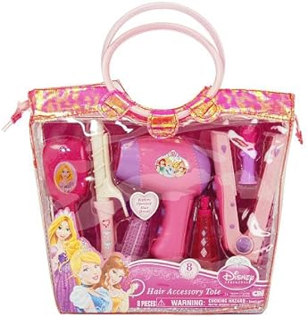 The Disney Princess Beauty Tote comes with Princess themed hair accessories and play styling tools. Combs for your home salon or home spa.