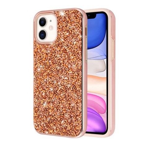For Apple Iphone 11 Rose Gold Encrusted Rhinestones Hybrid Hard Tpu Case Cover Target