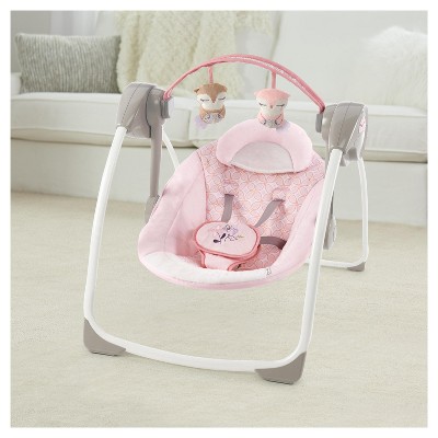 Swing in ultimate comfort anytime anywhere with Ingenuitys Comfort 2 Go Portable Swing in the Audrey fashion.